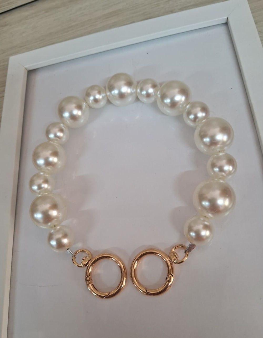 Dê um toque de elegância e sofisticação às suas bolsas artesanais com esta linda alça de resina perolada! ????