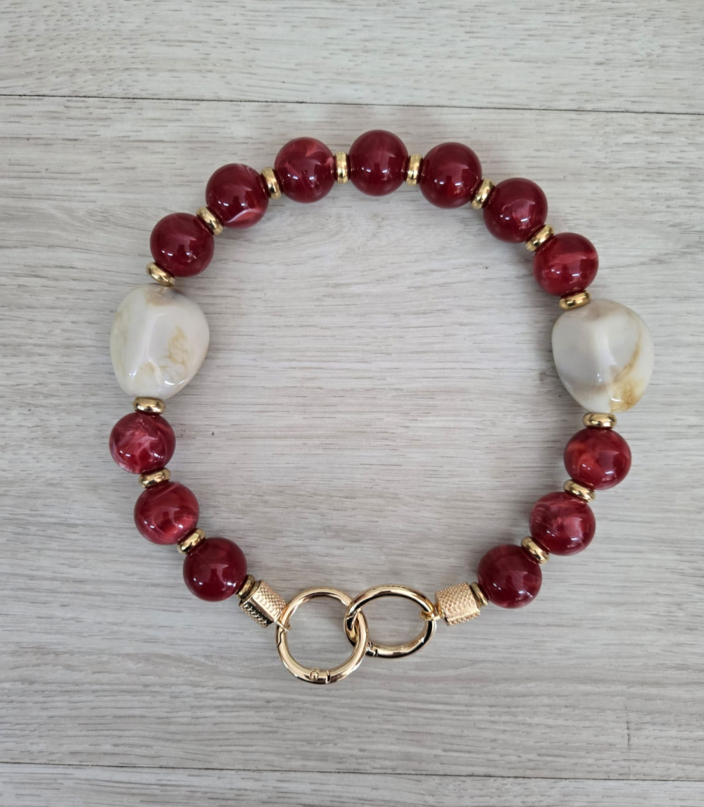 Alça de Bola de Resina - Vinho com bege mesclado 44 cm