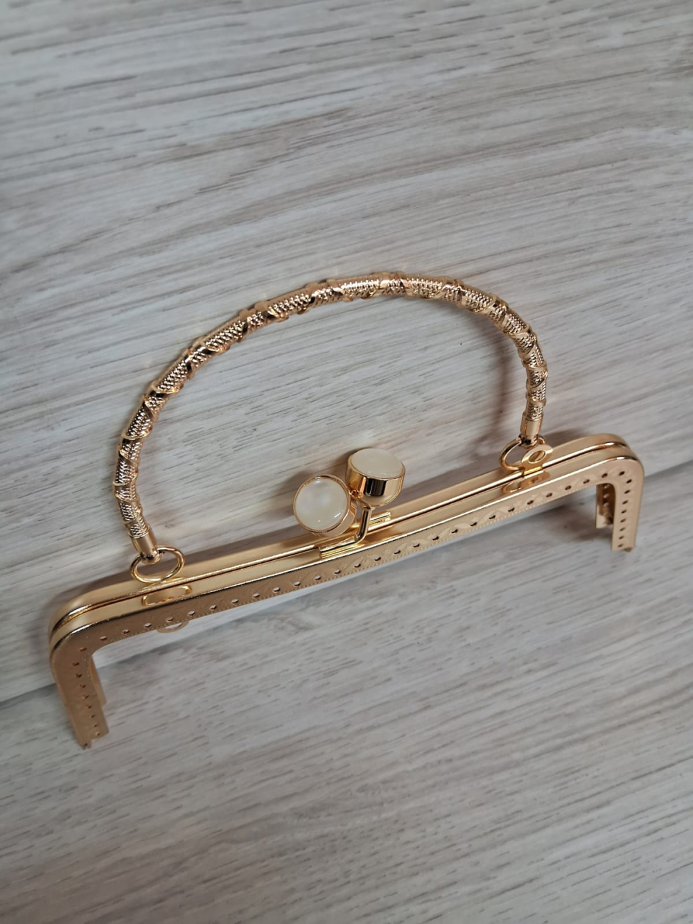 Possui alça fixa no próprio fecho, ideal para bolsas de mão com estilo elegante e sofisticado,com abertura por esfera dupla e perolada, proporcionando segurança e charme às suas criações.