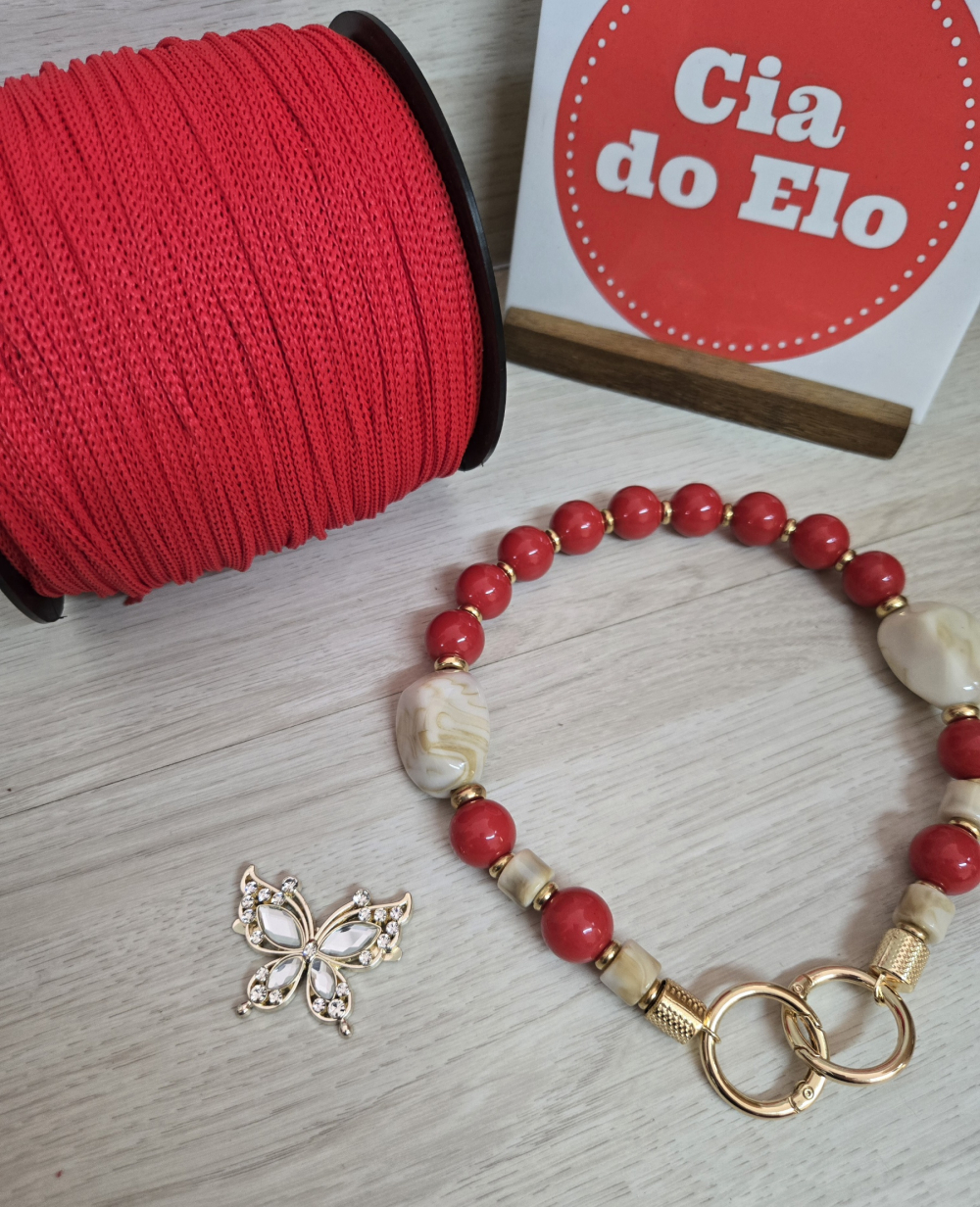 1 Alça de bola de resina vermelha com argola articulada dourada