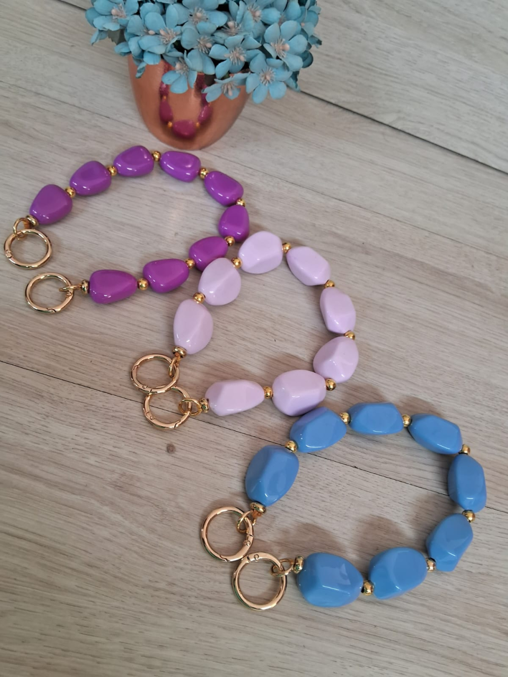3 ALÇA DE RESINA NAS 3 CORES (UMA DE CADA MODELO DA IMAGEM) COM 42CM CADA COM ARGOLA ARTICULADA DOURADA