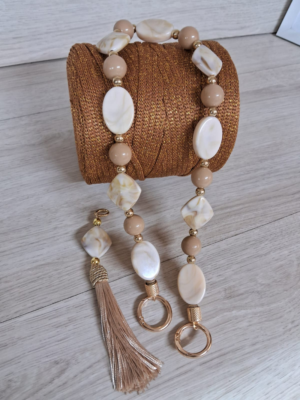 Um fio de poliéster 5mm CARAMELO COM LUREX