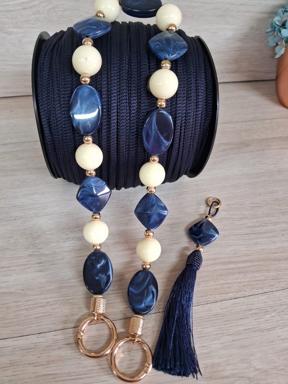 UMA ALÇA DE RESINA COM 62CM E ARGOLA ARTICULADA COURADA