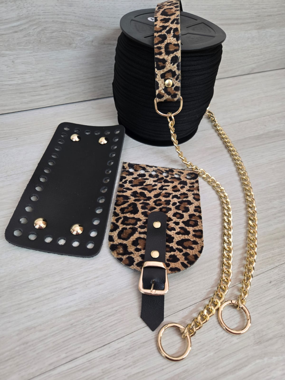 UM ALÇA DE COURO SINTÉTICO ANIMAL PRINT ONÇA COM CORRENTE GRUMET DOURADO COM ARGOLA ARTICULADA DOURADA