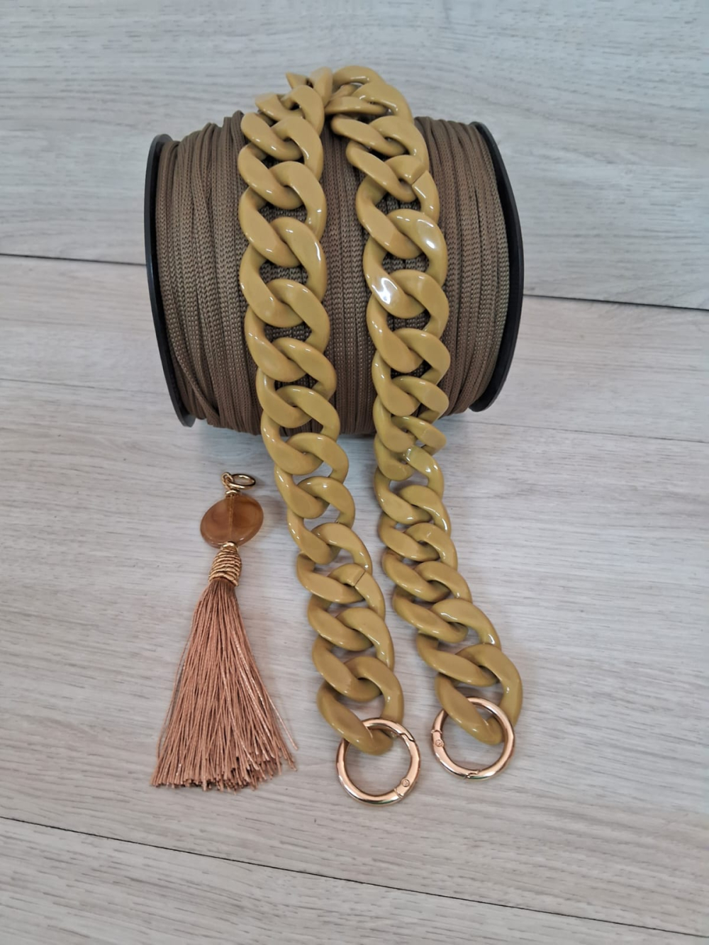 UMA ALÇA DE ELOS DE RESINA COM 65CM COM ARGOLA ARTICULADA DOURADA