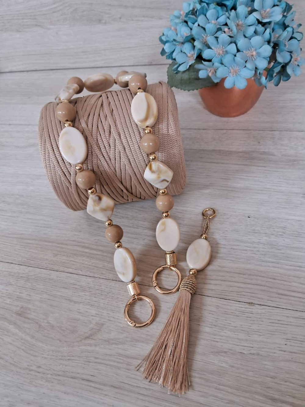 Uma alça de bola de resina com argola articulada dourada 63cm