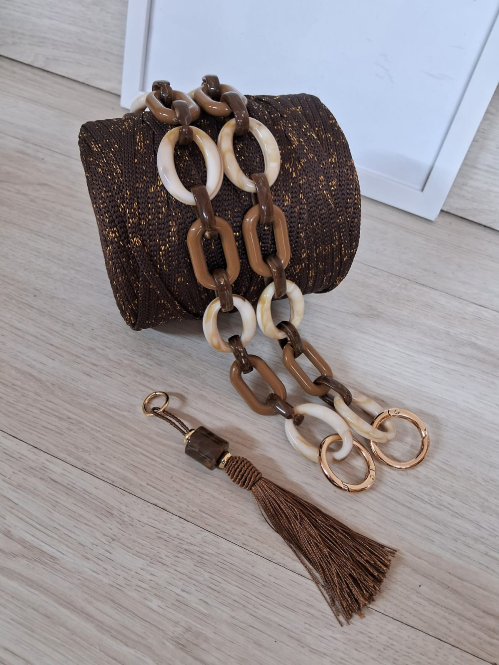 Um fio de poliéster CHOCOLATE COM LUREX 5MM