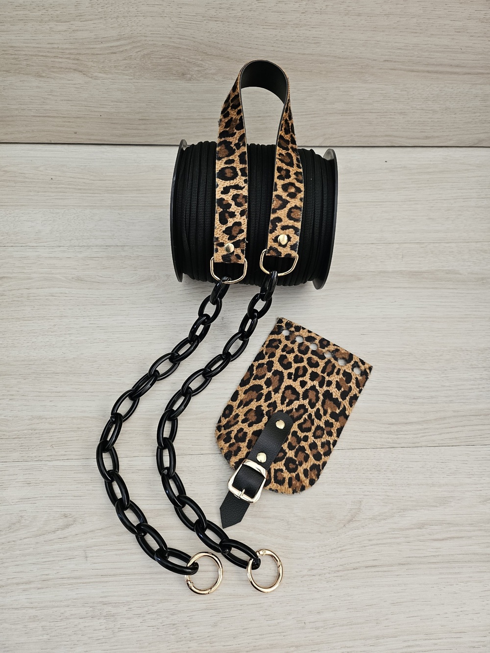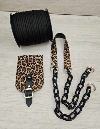 UMA ALÇA SINTÉTICA COM ESTAMPA ANIMAL PRINT E COM ELOS TAMANHO TOTAL 1.10M